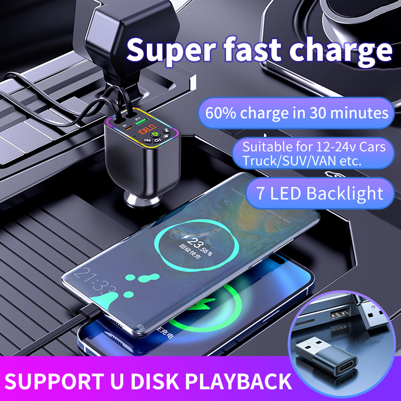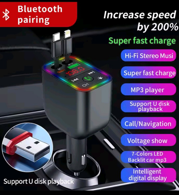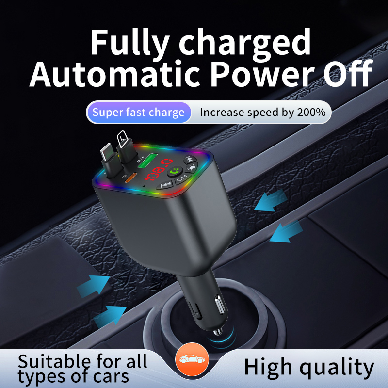 • Super Fast Charging & LED: With Five ports, including USB and Type-C ports, our bluetooth adapter for car charger offers up to 100W Type-C charging speed and upto PD 120 W charging. This means that you can enjoy fast and efficient charging for your devices, saving you valuable time. Indulge in a delightful driving experience with our trendy rainbow light design.
