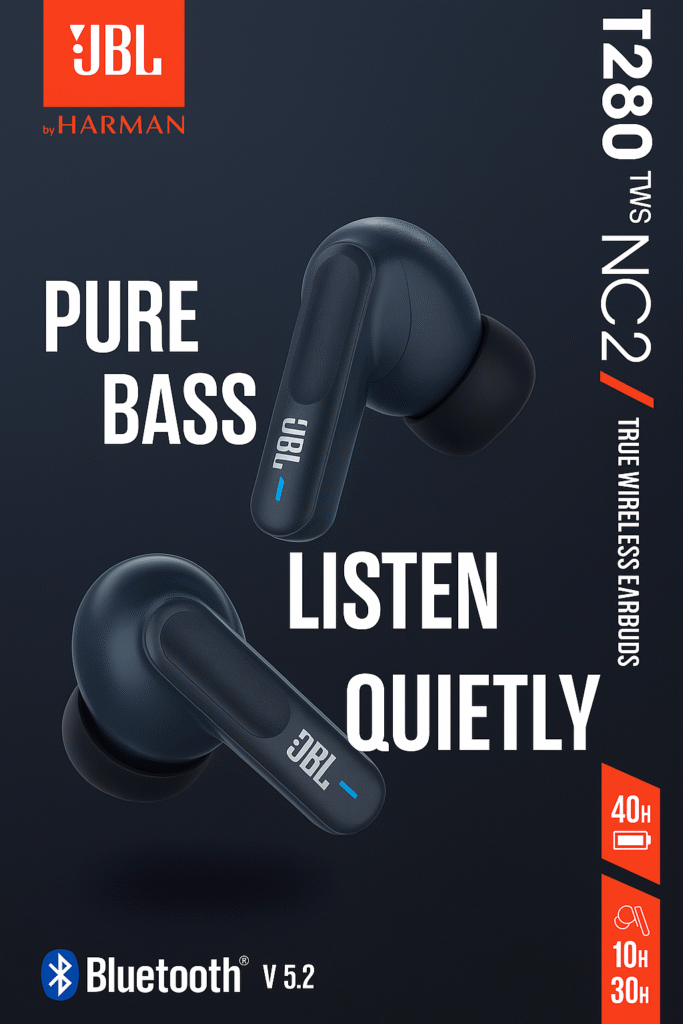 Experience Pure Sound with JBL T280 NC2 TWS Earbuds